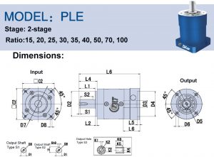 PLE is a light but powerful planetary gearbox. It is 25% lighter than comparable conventional drives.PLE is a spur gear planetary gearbox,you will accordingly benefit from the highest dynamics needed for multiple axis systems. FHTW PLE precision planetary gearboxes is with high performance at a fair price:It is powerful, yet efficient, and delivers a high performance for attractive acquisition costs.Even in extreme situations, the PLE will never let you down thanks to its low-friction bearing design and optimized lubrication. The low heat generation allows a continuous high speed without sacrifice to performance. PLE planetary gearbox have a full dimensions,suit for any brands of motor,such as Delta,Panasonic, Fanuc, SIEMENS, Matsushita, Mitsubishi, Yaskawa, etc.Also we accept input dimension customized and OEM service.